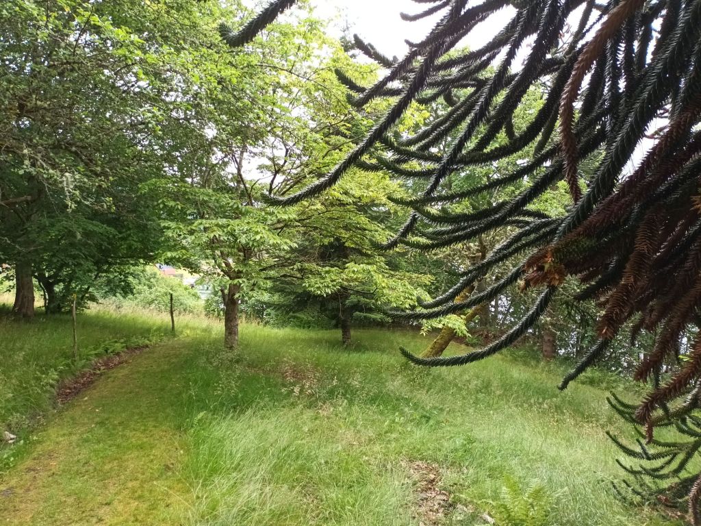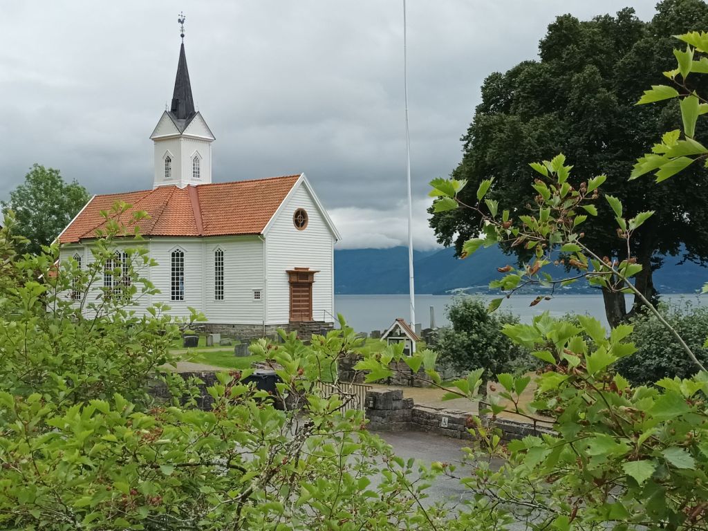 Decided to buy myself a 7 day bus pass, and christened it with a journey to Dragsvik, at the tip of the other side of Ese Fjord. I walked part of a waymarked nature trail, regretting that I hadn’t brought my stick, and then set off round the Fjord to Balestrand rather than waiting for the next bus. On the way I discovered another, much easier nature trail through Lunde Arboretum, with some exotic varieties and outstanding examples of more familiar trees. Then back to the road, passing Tjugum church and the bench at the head of the Fjord.