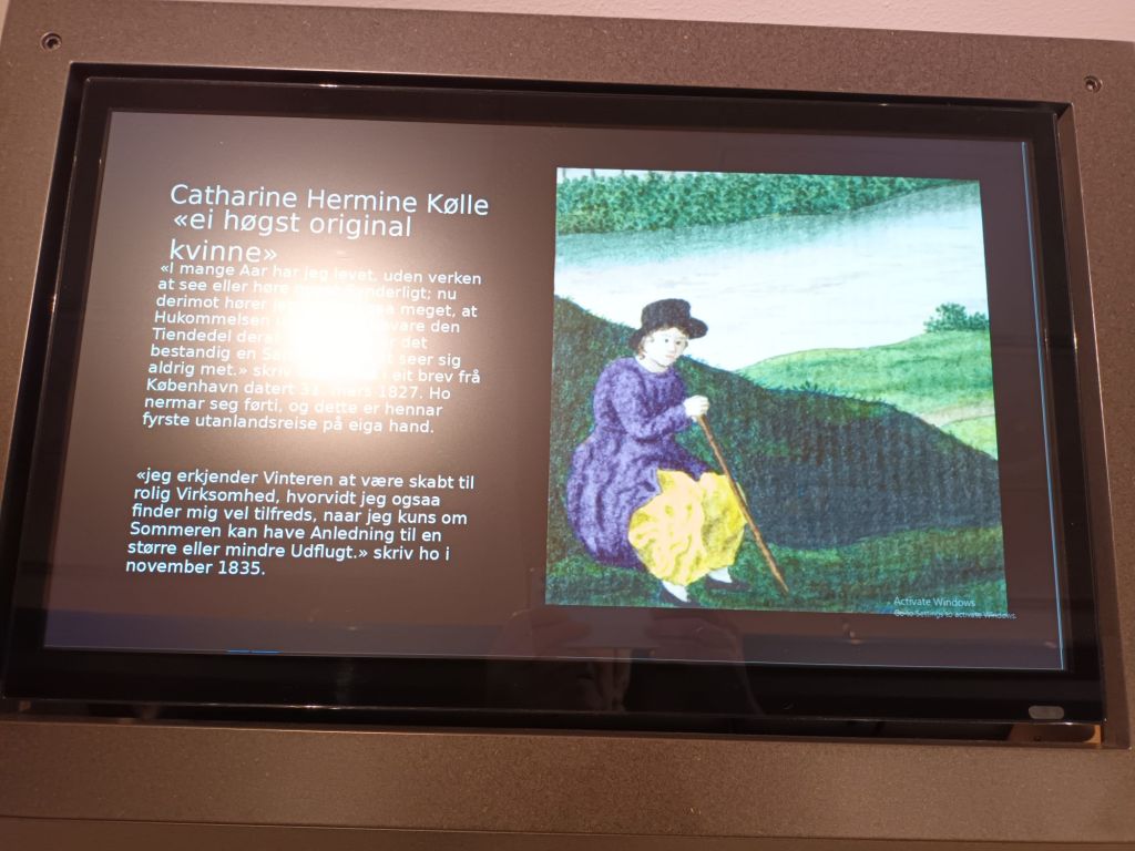 Finally managed to visit the Travel and Tourism Museum, which is mostly about T&T in Sogndal, and Balestrand in particular. There is a gallery devoted to the life and paintings of a keen walker, Catherine Hermine Kølle, who was advised to take up walking for the sake of her health, and never stopped. She must have carried her paints with her, as her notebooks were beautifully illustrated.