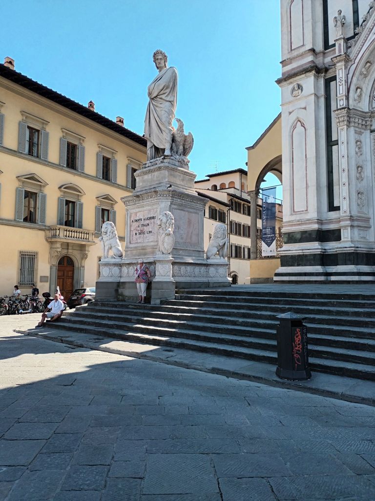We walked in past Santa Croce, the Franciscan church, with a statue of Dante outside and an empty tomb within.