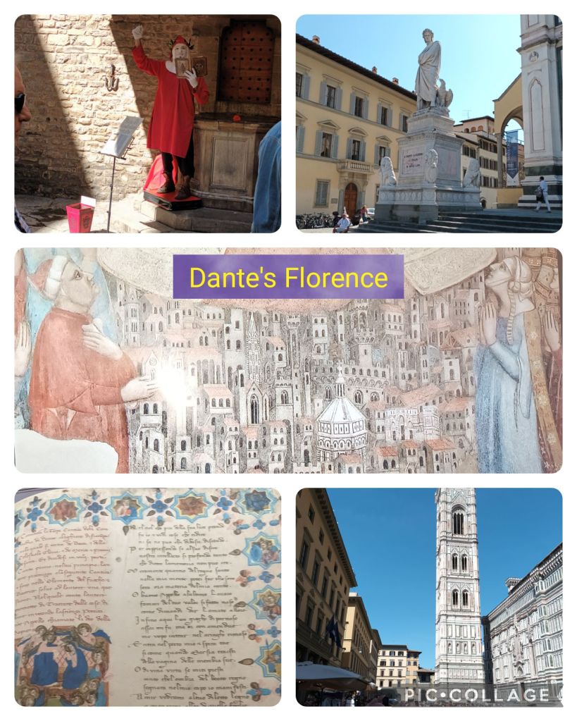 Some people had tickets to visit one of the major galleries , bought online either in advance or with the help of a local guide. I had decided to devote the afternoon to the Dante museum, and, should time allow, other places on a Dante walk I found in a guide book on Kindle. This was a good choice, with much time spent sitting and watching a video with an actor reading extracts from the Divine Comedy with English subtitles.
