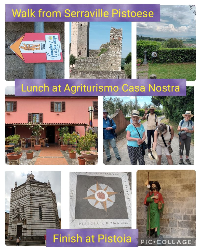 The first of two days walking on St James Way. We met our leaders, Marco and Alessandro, and saw the sights of Serravalle Pistoise: the town hall for stamps and toilet, the church and two fortresses depending on which city they were fighting at the time.