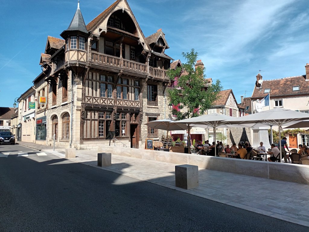 At the second stop, now following a backwater, I lay on a bench for a rest, having walked 10 km. Left the cycle path for a footpath across the grass under a bridge, turned a corner, and there was Joigny, spread out on the hill ahead. I climbed the hill to St John’s Church, which was open and playing recorded Gregoruan chant. No pilgrim stamp, though, so after descending the hill on steep passageways and detouring for a bar and a food shop, I found one at the Tourist Office.