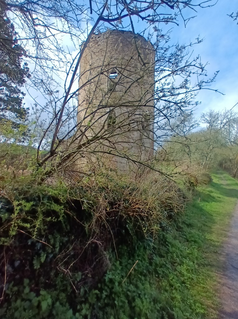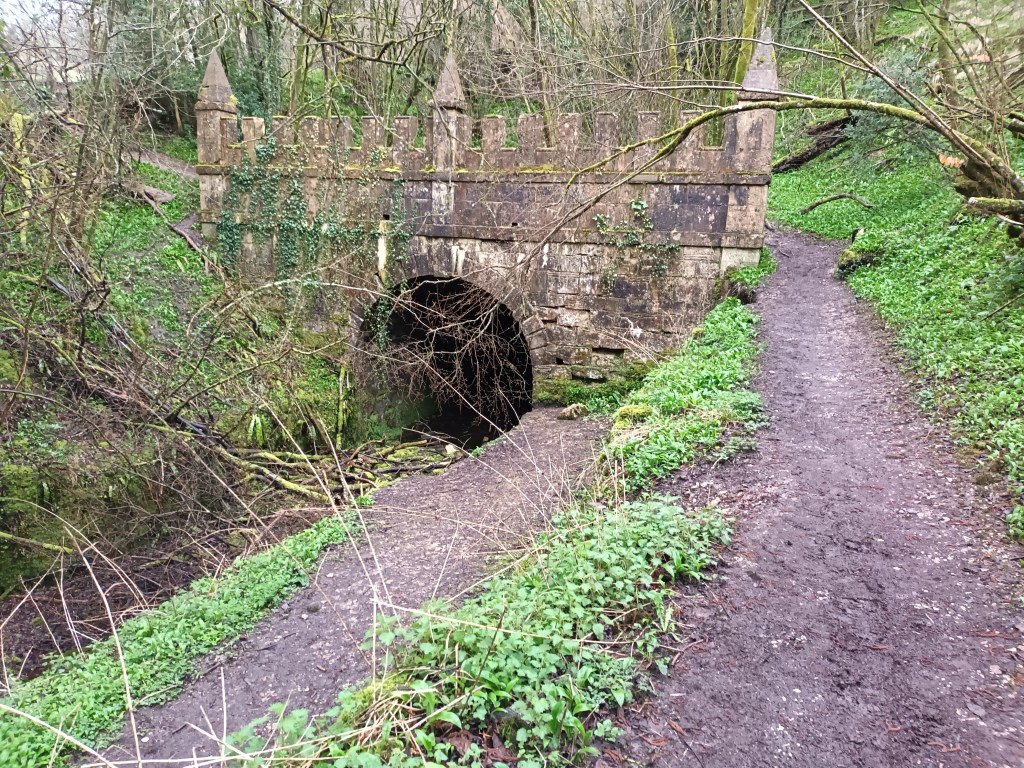 The route became a narrow path by a railway line, so muddy in places that my boots are on the point of disintegrating. I managed with the help of a branch picked up on one if the worst stretches, and eventually reached a main road just short of the “Bridge of the Caves”.