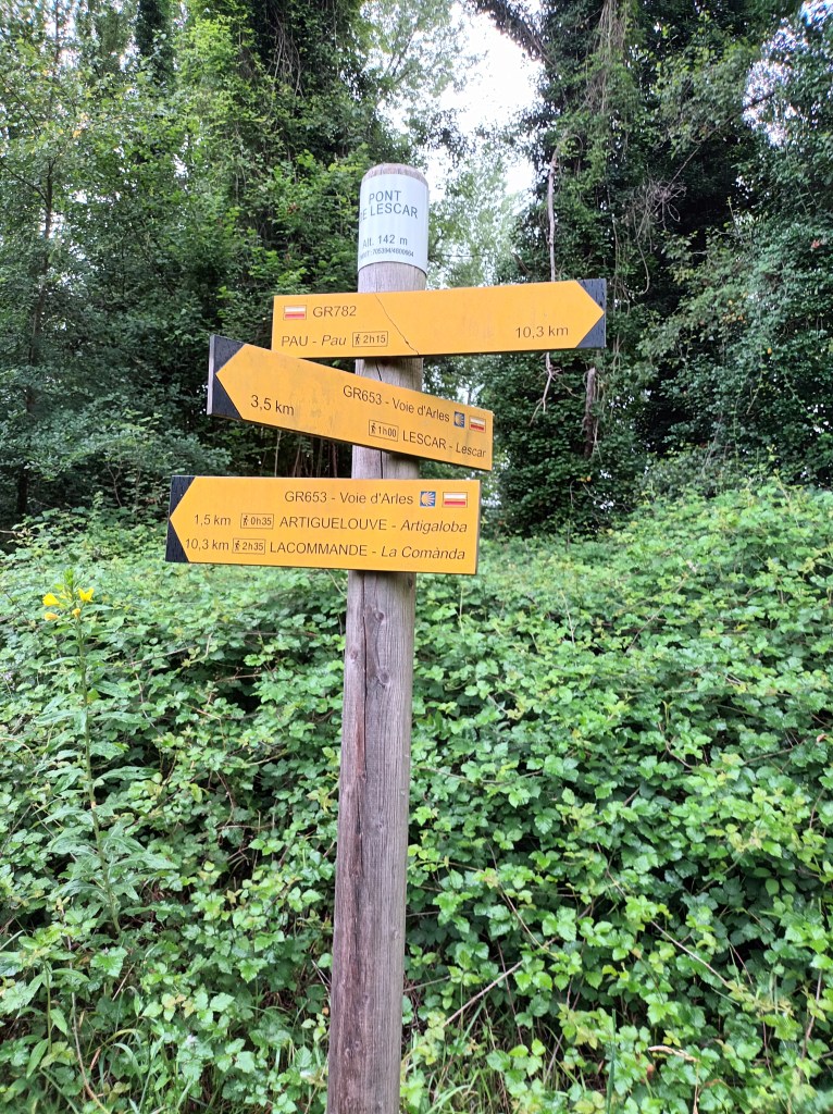 After splitting the easy stage of the Voie d’Arles (GR653) from Morlaàs to Artiguelouve between two hot days, I had found ideal weather for the more challenging continuation to Oloron Sainte Marie: low 20s, overcast, very little rain.