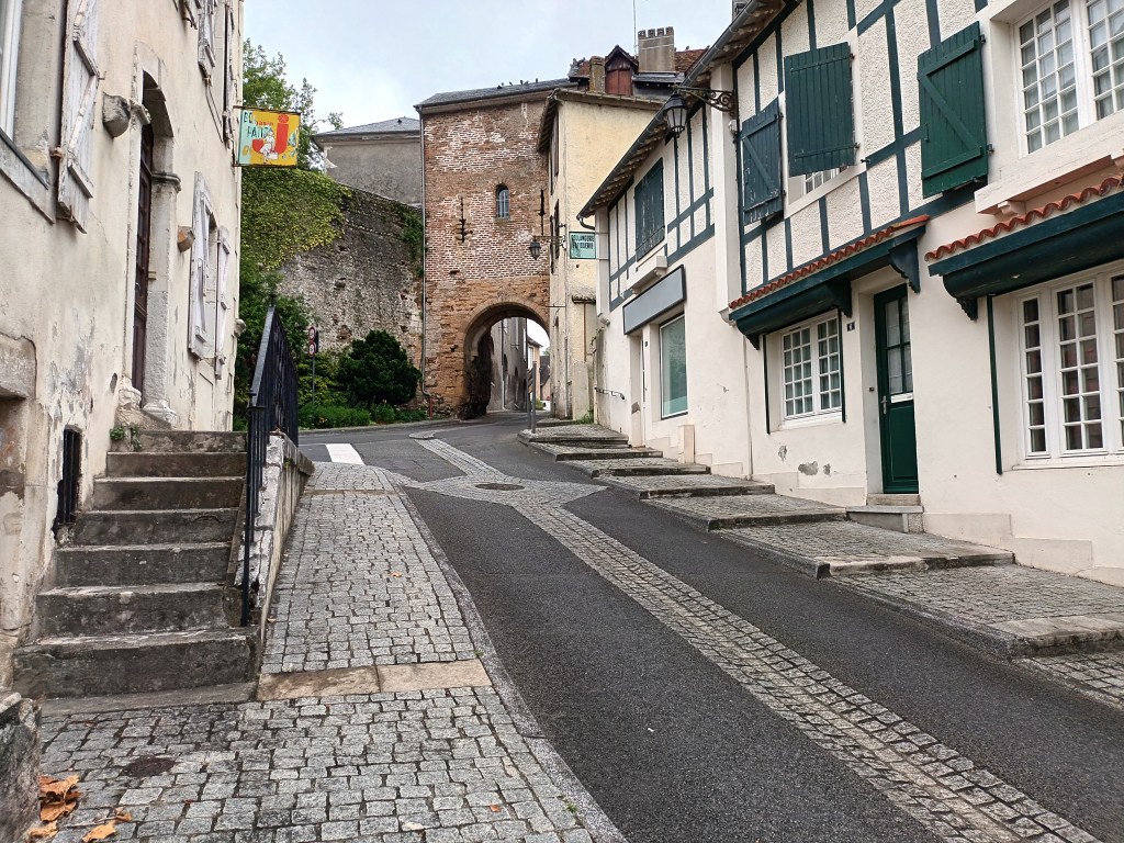 Fortunately, once across, a footpath led back to the river bank and later joined a quiet lane into Lescar, a medieval town where many buses from Pau turn around. Arrived in the old town just as everything was closing for lunch.