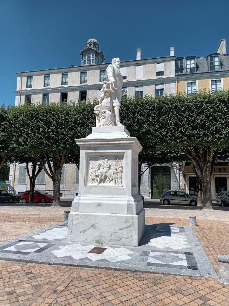Now it’s Monday, and too hot for a long walk. I signed up for a sightseeing tour of places associated with Henri IV and his family. The other 19 participants knew a lot more about the subject than I did! Here is Henri turning his back on the Pyrenees.