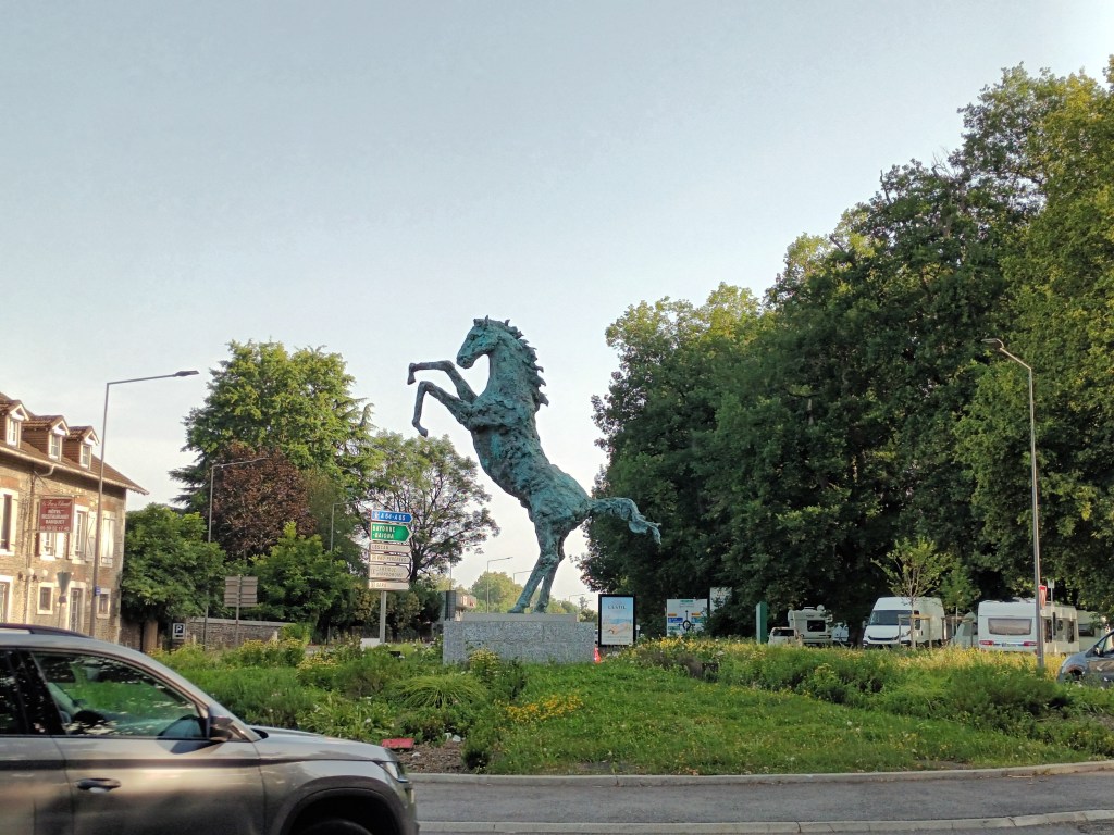 Though overcast, the day was warming up, and I needed a couple of water stops before reaching the Forêt du Bâtard. What a relief! Much cooler, and even a tap to refill a water bottle. I had been here before, in 2017, and parts of the route through the forest and afterwards – footbridge over the motorway and passing the racecourse – were familiar.