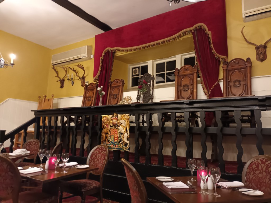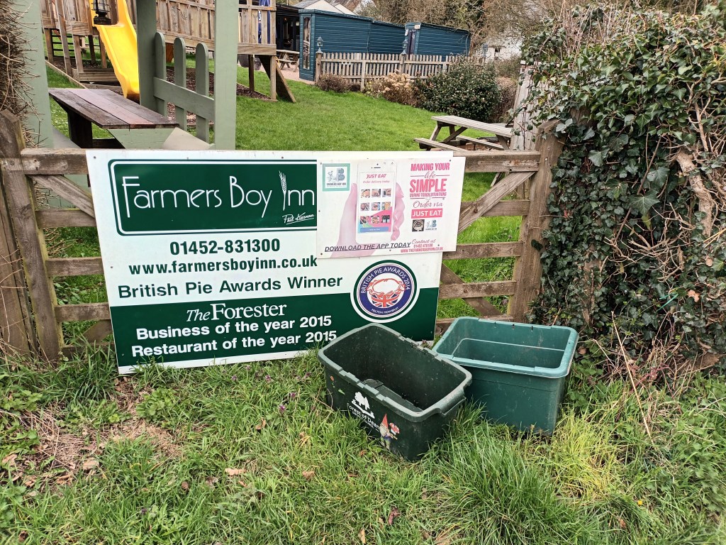 However, when I did reach a road, Bisley was in sight. It has two pubs. The first didn’t open till 5, so I sat on a bench outside and ate my satsuma. The Bull was open for liquid input and output, and cooked food had I needed it. Obviously popular with locals.